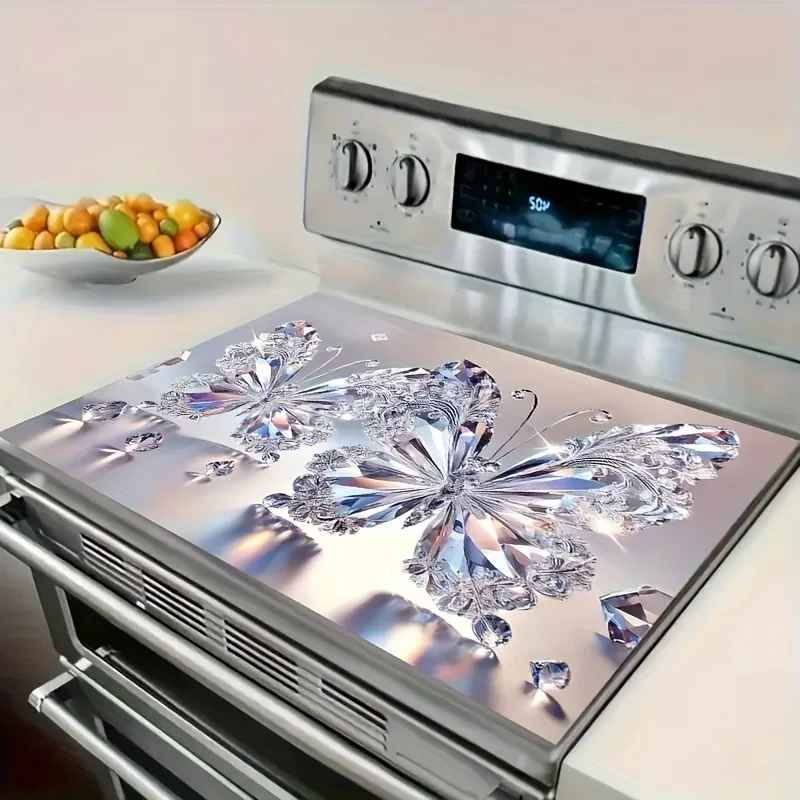 Cubierta de Lujo para Estufa con Diseño de Mariposa de Cristal, Protector de Quemador Antideslizante y Resistente al Calor, Elegante Tapete Protector de Estufa con Diamantes