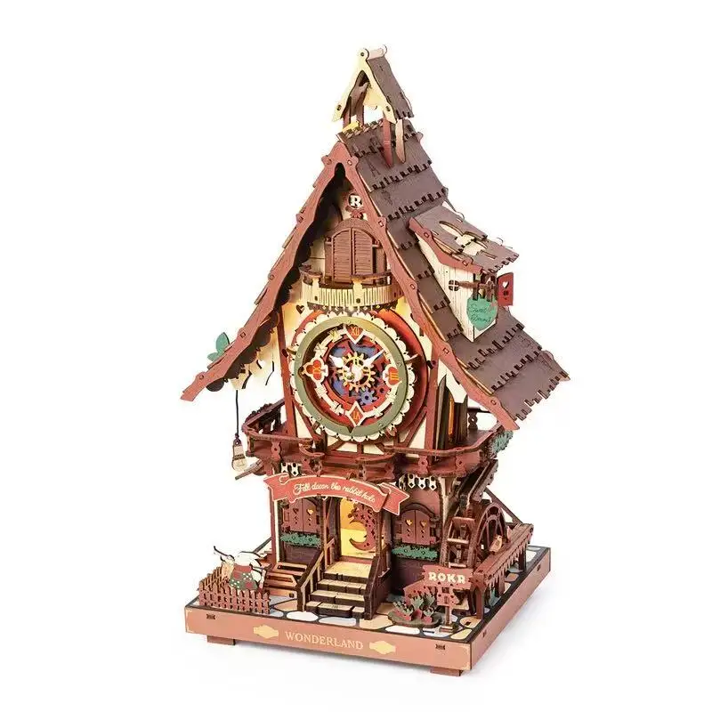 Reloj de Cuco Mecánico Robotime ROKR, Rompecabezas 3D de Madera Precoloreado, Kits de Construcción de Relojes de Pared, Decoración del Hogar, Regalo Único para Hombres