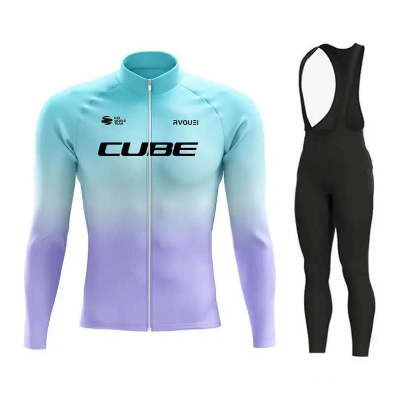 Rvouei-Conjunto de Jersey de Ciclismo transpirable de manga larga, pantalones con pechera, Ropa de Ciclismo, uniforme para bicicleta de montaña, Ropa para hombre