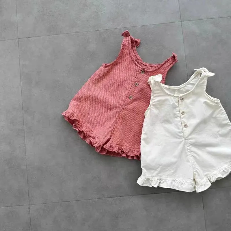 HY2831 Mono de verano para niñas con peto y pantalones cortos, ropa para bebés, conjunto de una pieza para niñas pequeñas