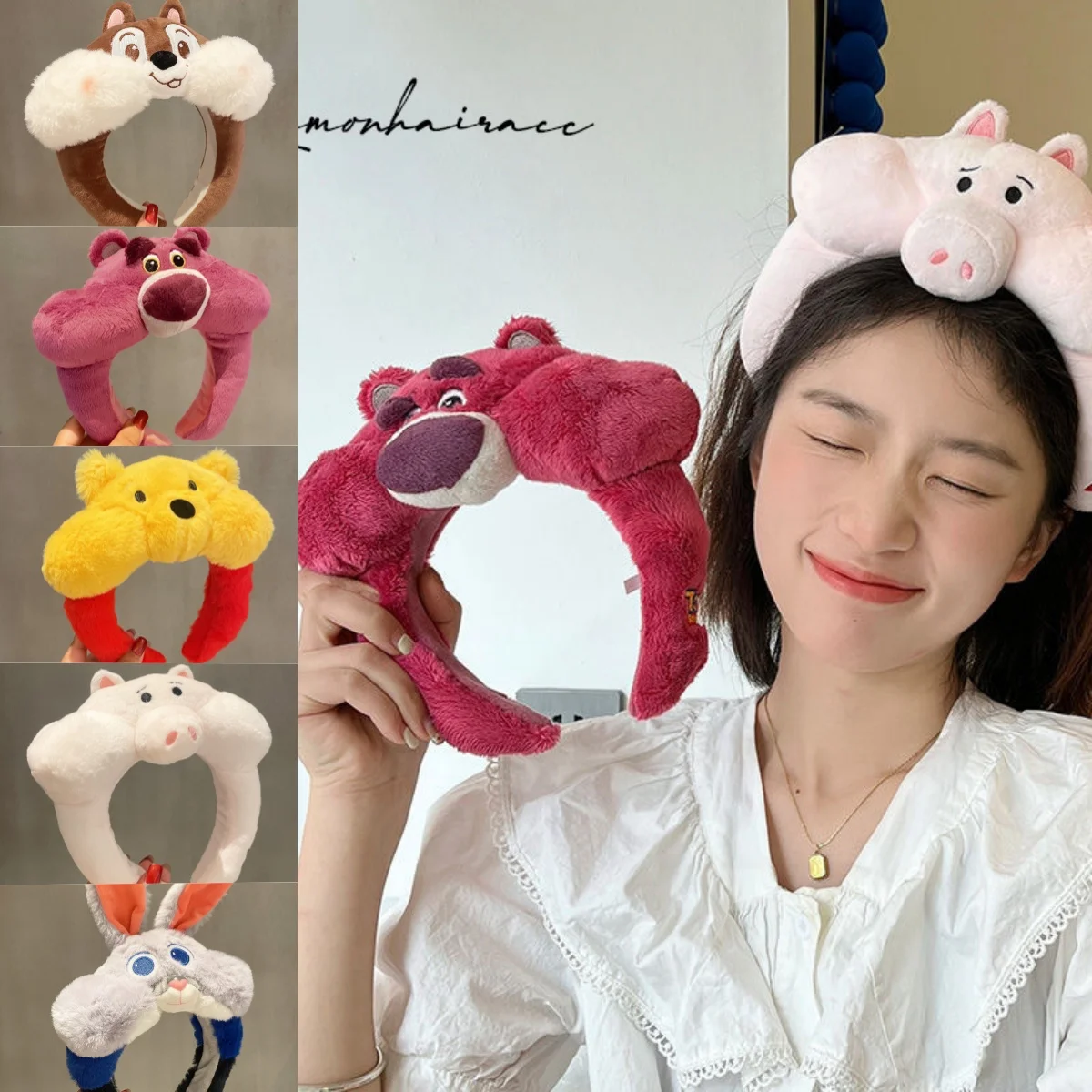 Diadema de Winnie the Pooh con diseño de castaña roja, diadema para lavarse la cara para mujer, diadema de dibujos animados de oso fresa, accesorio lindo para niña