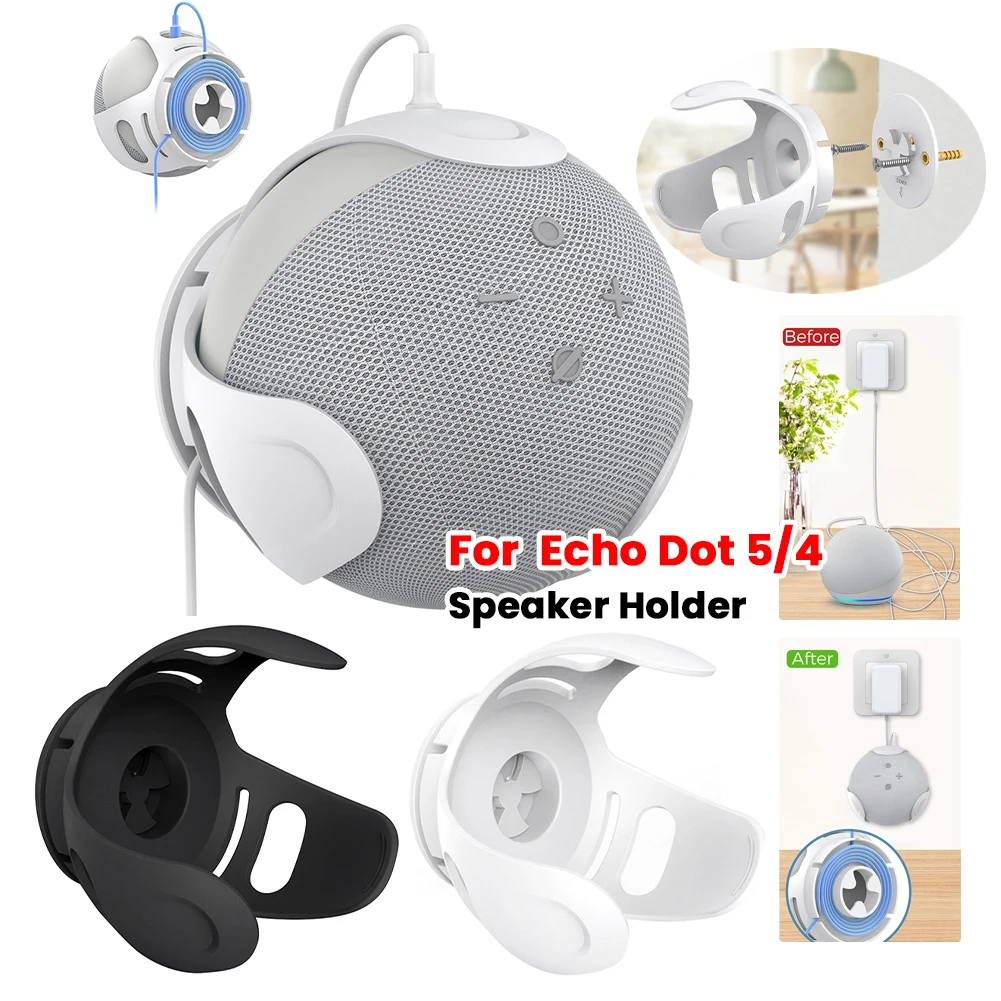 Soporte de plástico para altavoces de audio, soporte para altavoz compatible con Bluetooth montado en la pared con gestión de cables para Echo Dot 5/4