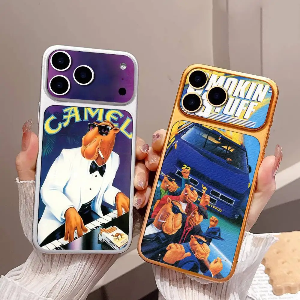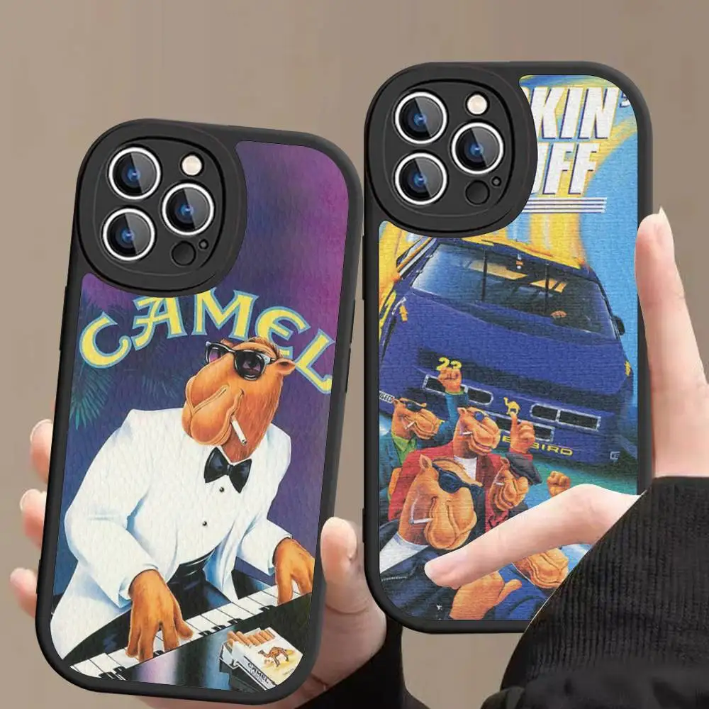 Funda de Cuero para Teléfono con Diseño de Cigarrillos de la Marca de Tabaco C-Camel, Compatible con iPhone 16, 15, 14, 13, 12, 11 Pro Max Plus