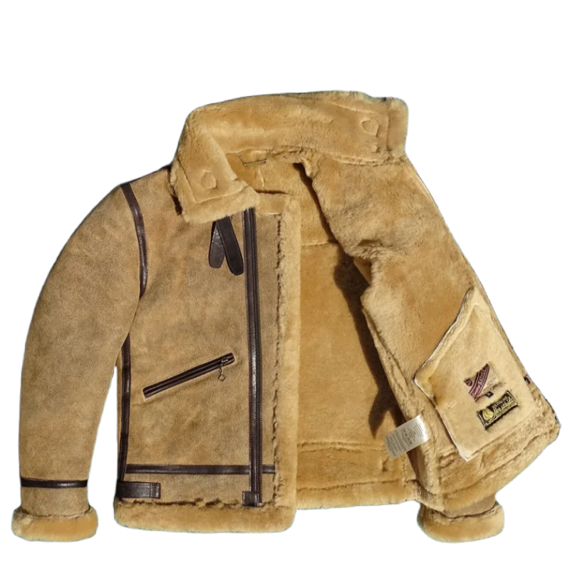 Chaqueta de Piloto B3 de Cuero Genuino para Hombre, Color Tabaco y Camel, Forro de Borrego de Primera Capa, Grosor Medio, Abrigo Térmico Cálido, Talla Grande 5XL