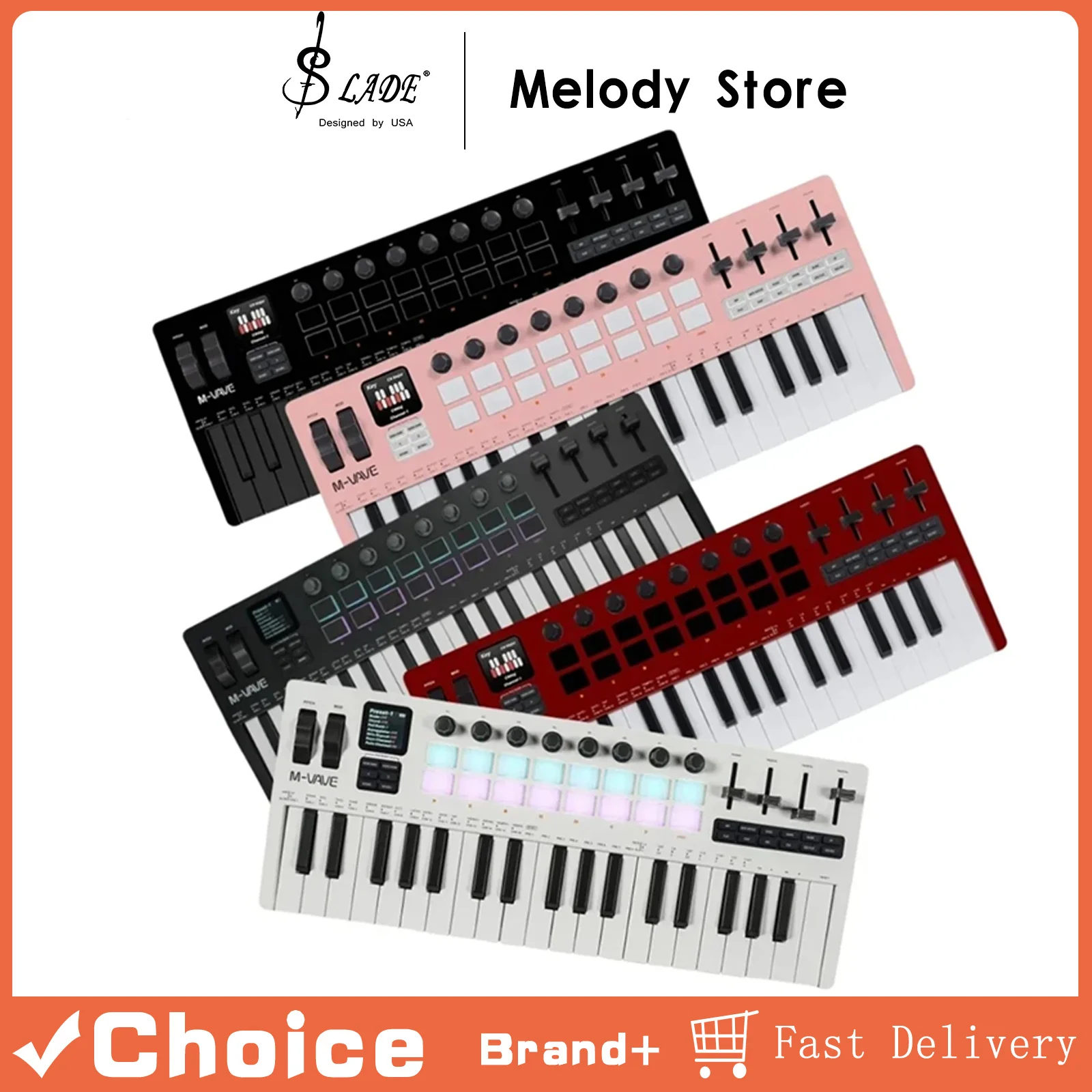 Teclado SMK-37 PRO, Controlador MIDI de 37 Teclas Con motor de sintetizador integrado, 8 perillas + 4 pads RGB de 16 colores para instrumentos de teclado