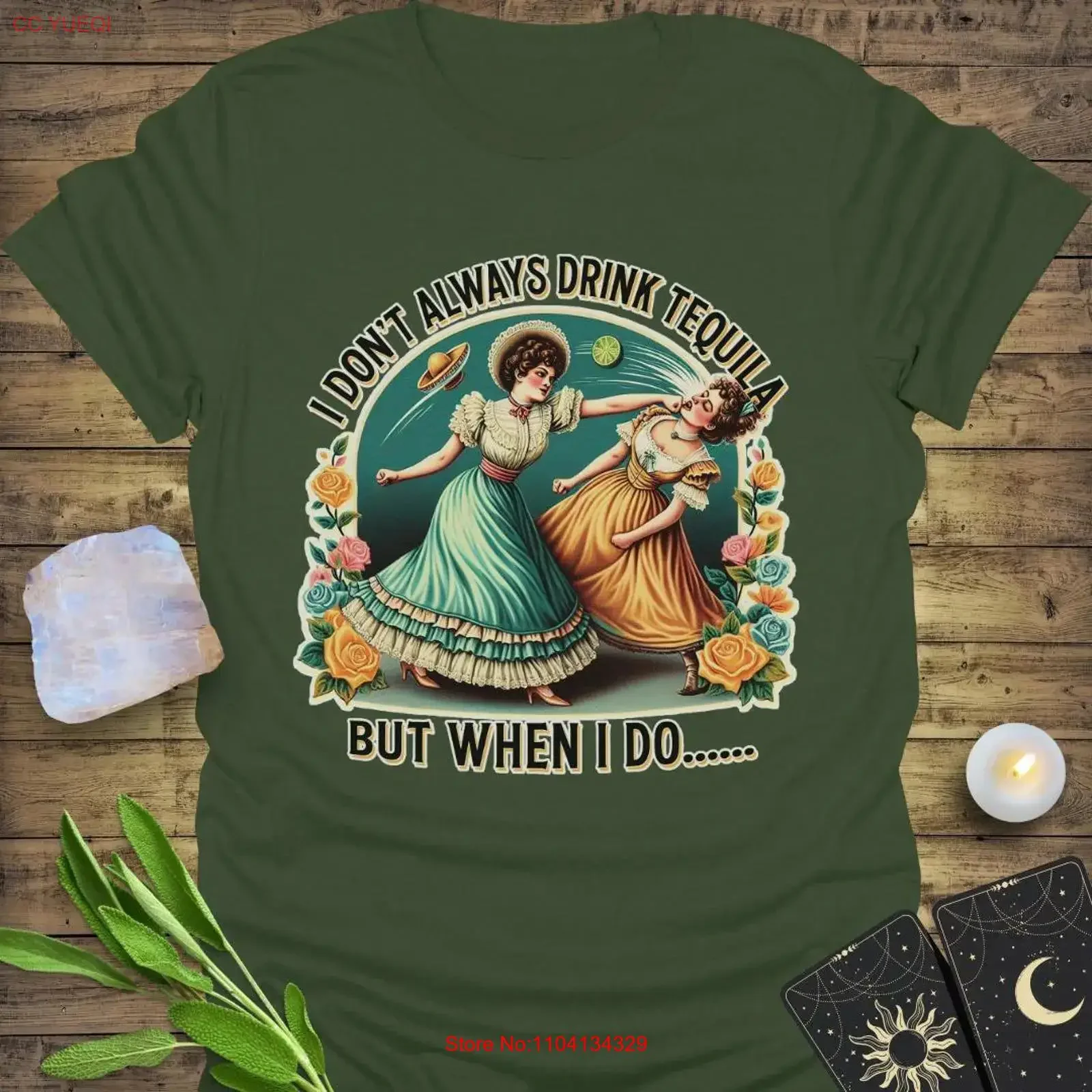 Camiseta con la frase 'No siempre bebo tequila', divertida, mágica, esotérica, mística, bohemia, espiritual, para mujer, estilo vintage, lavada, transpirable