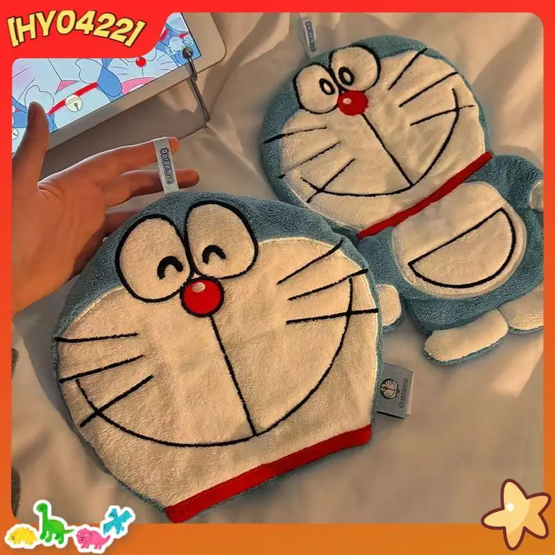 Toalla de mano absorbente Doraemon, sin perforaciones, multifuncional, con dibujos animados, para secar las manos, para decoración de pared del hogar y el baño