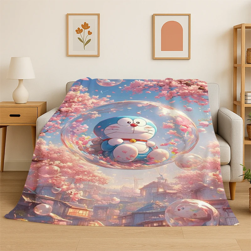 Manta de Franela Suave con Estampado de Doraemon y Jirachi, 6 Tamaños, para Camping, Sofá, Regalo