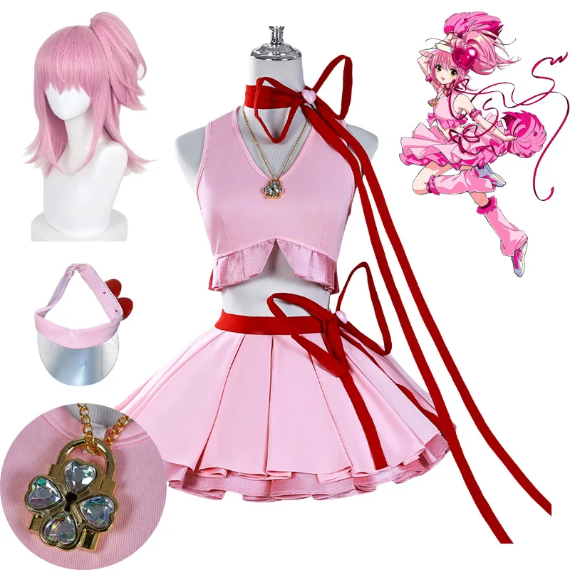 Disfraz de Cosplay de Anime Shugo Chara, Disfraz de Hinamori Amu, Peluca, Vestido Rosa de Amu para Transformación, Disfraz para Fiesta de Halloween para Mujeres