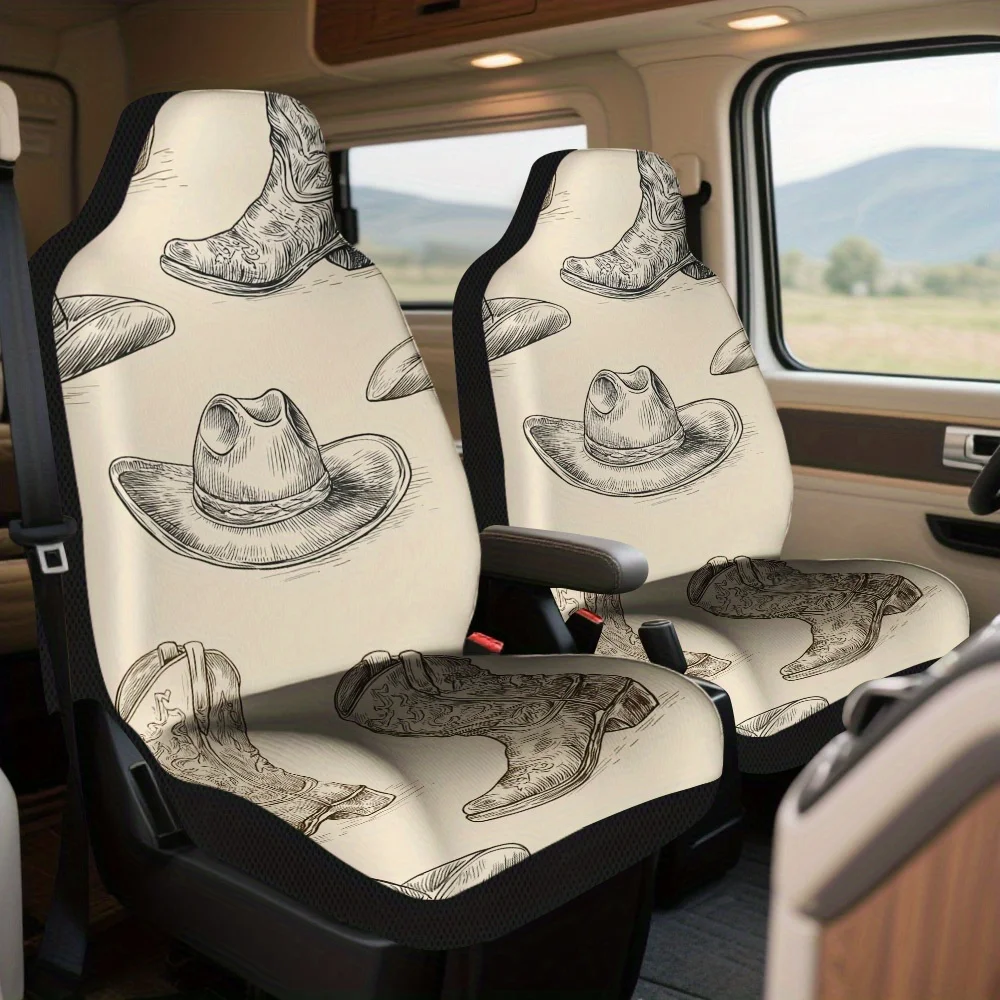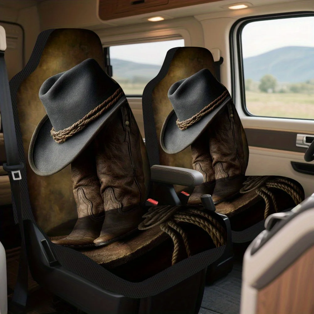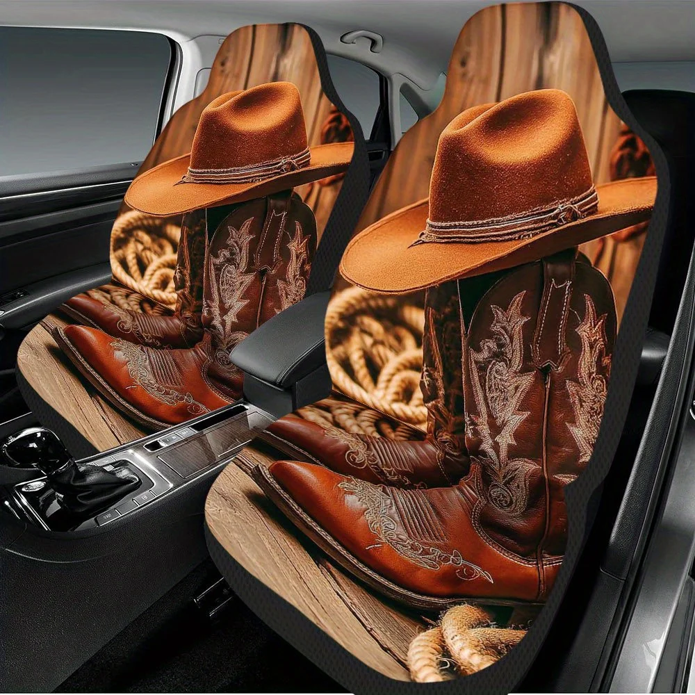 Juego de 2 fundas para asientos de coche con diseño de sombreros y botas de vaquero – compatibles con la mayoría de los vehículos, incluidos coches, camiones, furgonetas, etc.