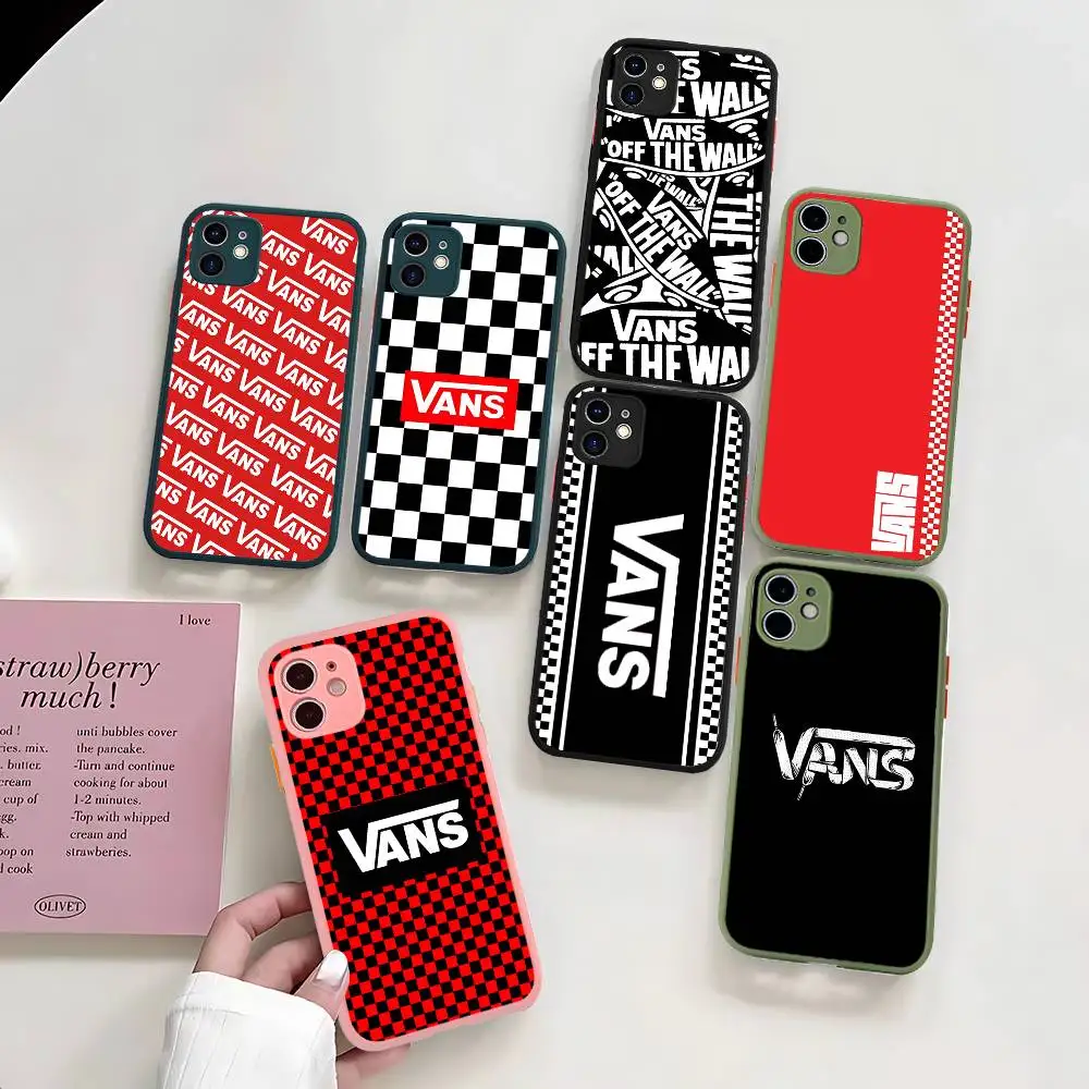 Funda de Teléfono Translúcida Mate V-VANS-S de Moda para iPhone 15 16 Pro Max 11 12 13 14 XS XR X Plus 16E