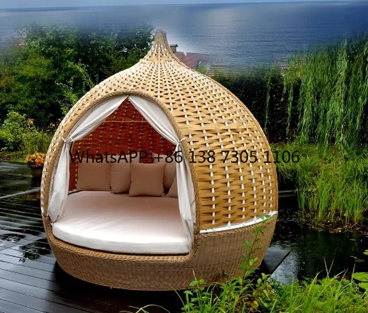 Cour personnalisé lit extérieur villa rotin lit de plage créatif en plein air nid d'oiseau grande piscine ronde salon de plage