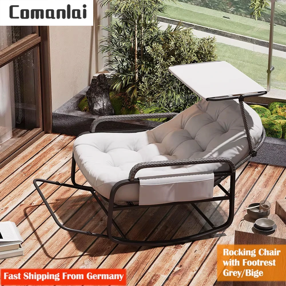 Chaise à bascule Comanlai avec repose-pieds pliable et toit solaire, chaise en rotin avec dossier réglable, rembourrée, chaise longue d'extérieur