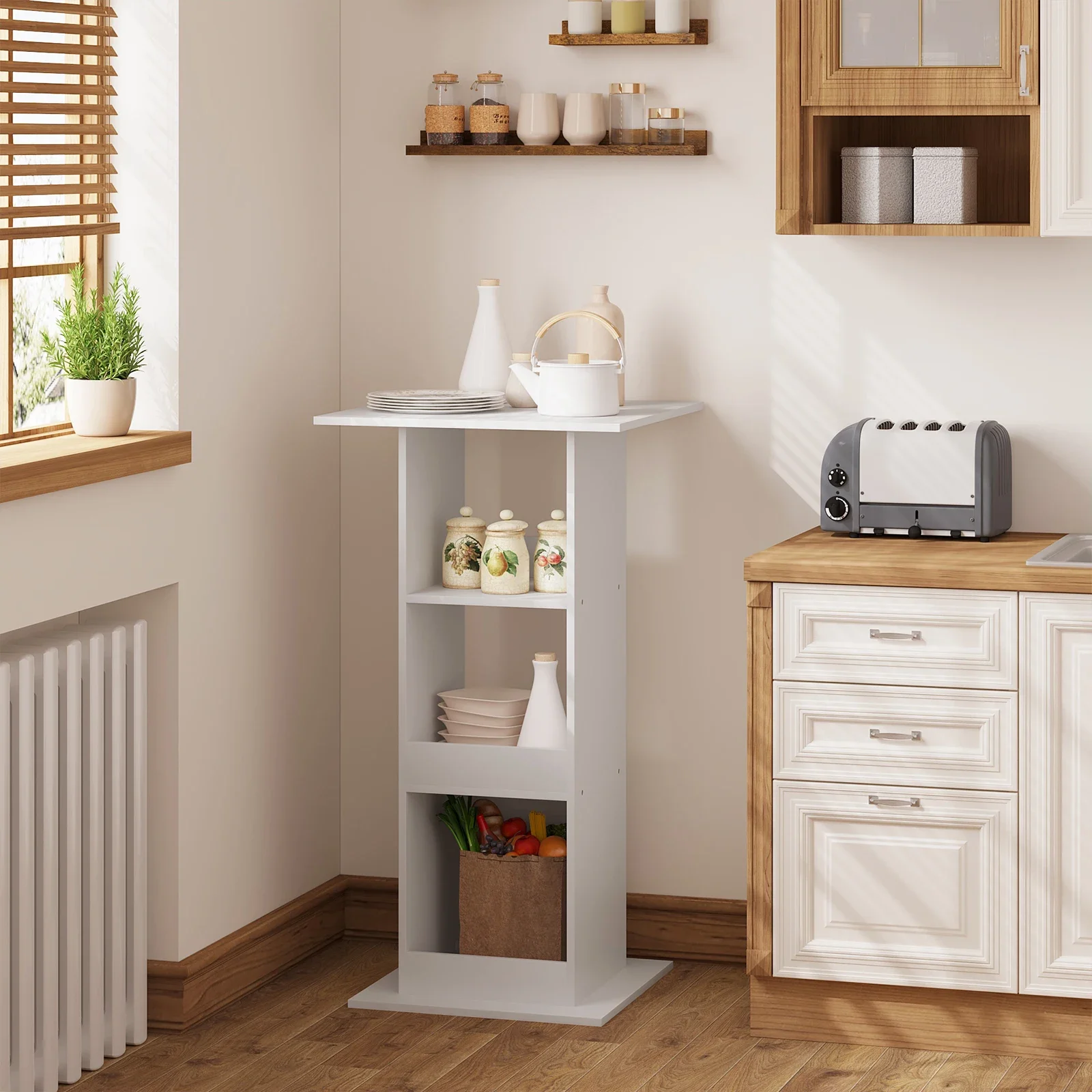 WOLTU 1PC Table de Bar Bistro Table de Comptoir Carrée avec 3 Étagères Armoire Latérale Support de Boissons pour Pub Cuisine Salle à Manger Salon
