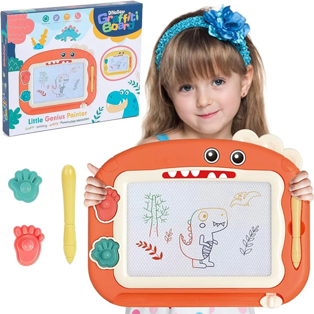 Tableau magnétique à dessin Little Genius Painter vert, jouet à gribouiller sans BPA pour tout-petits, bloc d'art éducatif pour enfants sur le thème des dinosaures