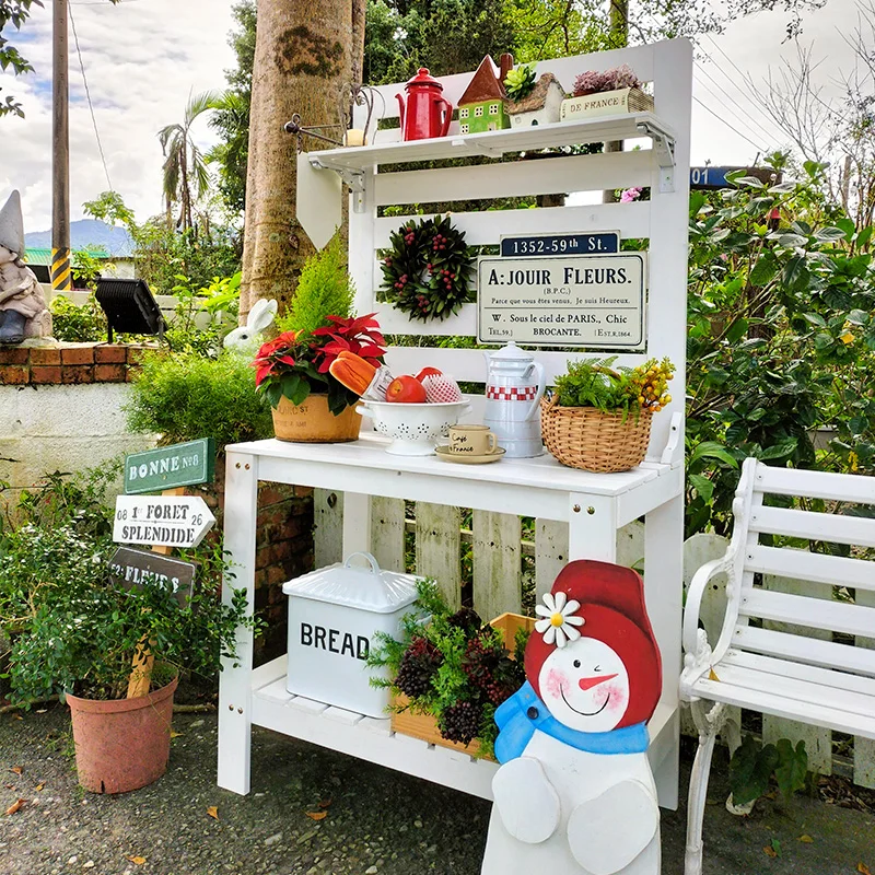 Support de fleurs extérieur, étagère de jardin de cour, magasin de fleurs, établi de plantation de fleurs en plein air