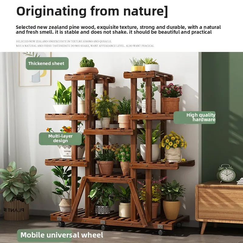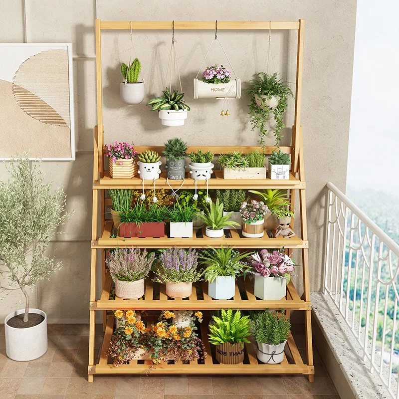 Support de fleurs en bois massif, support de fleurs multicouche, support de Placement de plantes pour Pot de fleur de balcon mobile