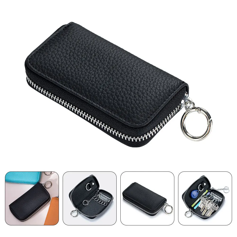 1Pc unisexe Portable en cuir PU voiture porte-clés sac-Simple couleur unie femme de ménage clé portefeuille couverture mallette de rangement