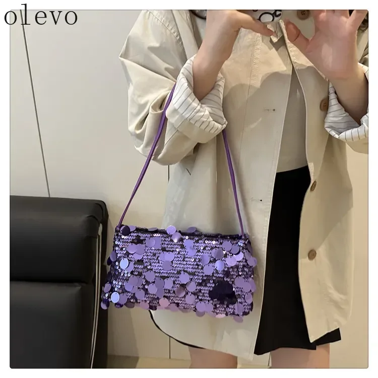 Sac à bandoulière léger à paillettes pour femmes, sac à main de soirée, couleur unie, mode, sangle réglable