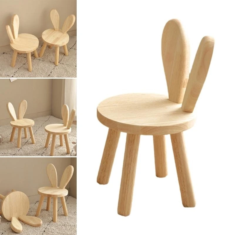 J15U – Adorable tabouret oreilles lapin en bois massif pour enfants, chaise à langer chaussures dessin animé, pratique