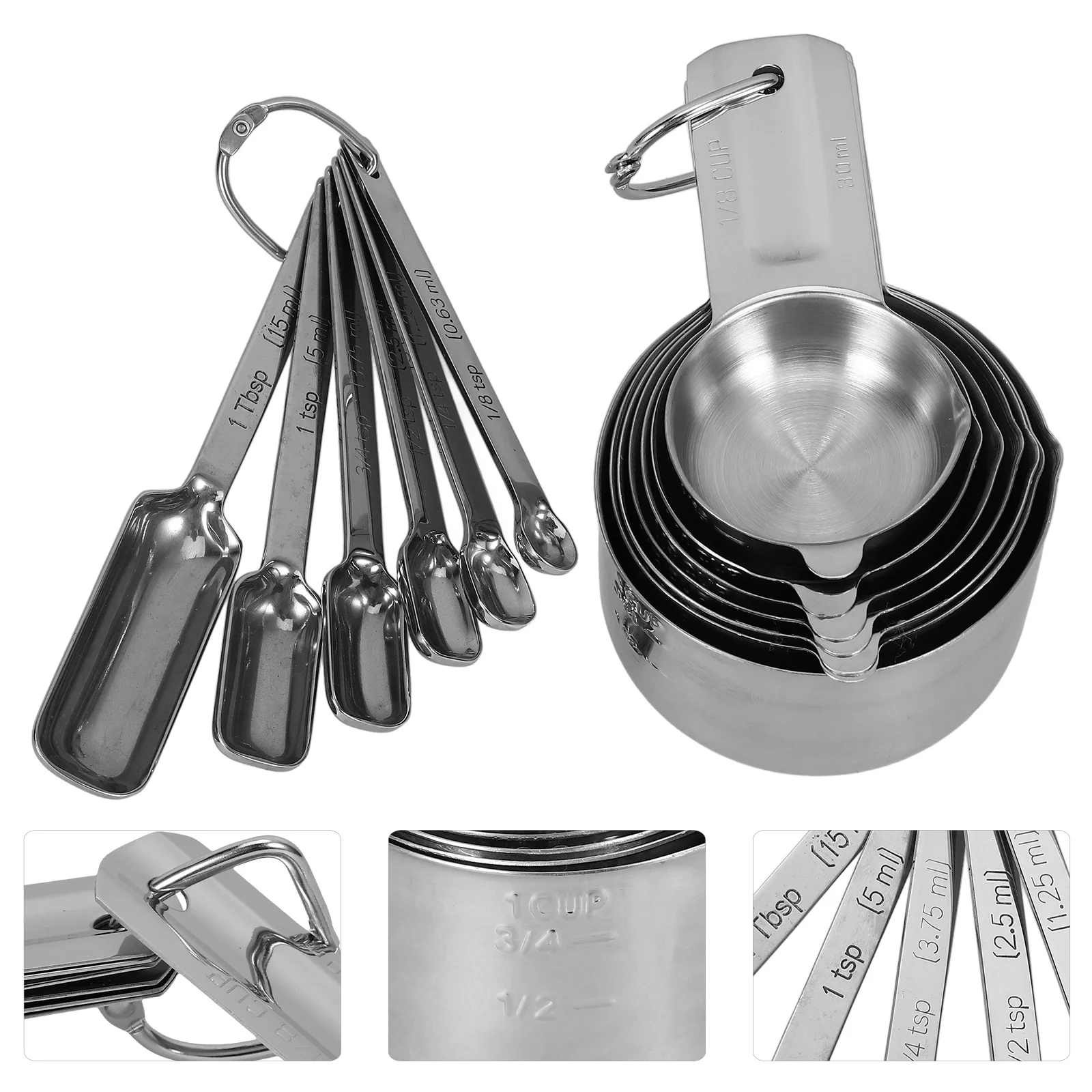 Ensemble de 8 tasses et cuillères à mesurer pour la cuisine, en acier inoxydable avec manche en bois, outils de mesure pour la pâtisserie et la cuisine