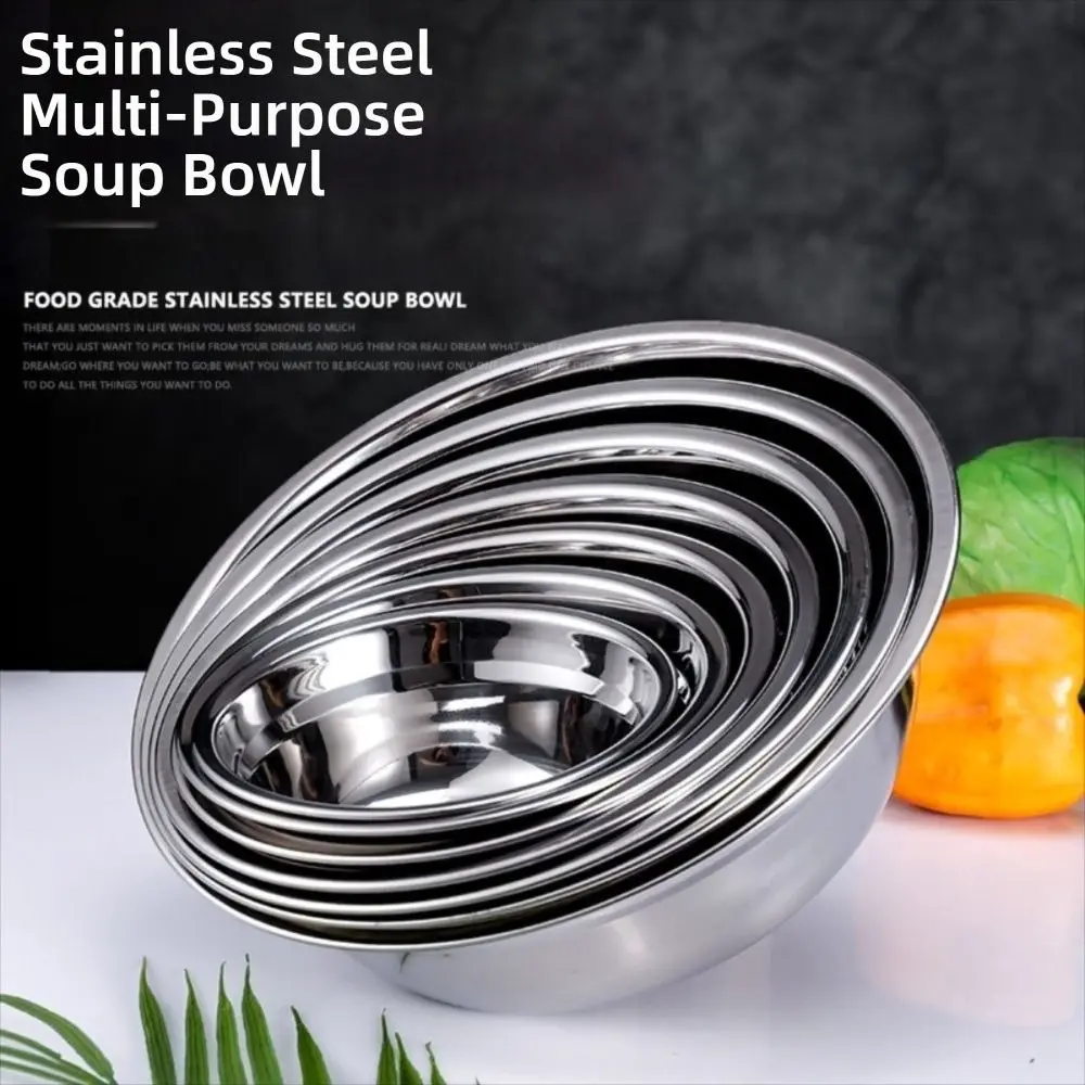 Nouveau Bols ronds en acier inoxydable épaissir plusieurs tailles bol à soupe lavage bol à fruits