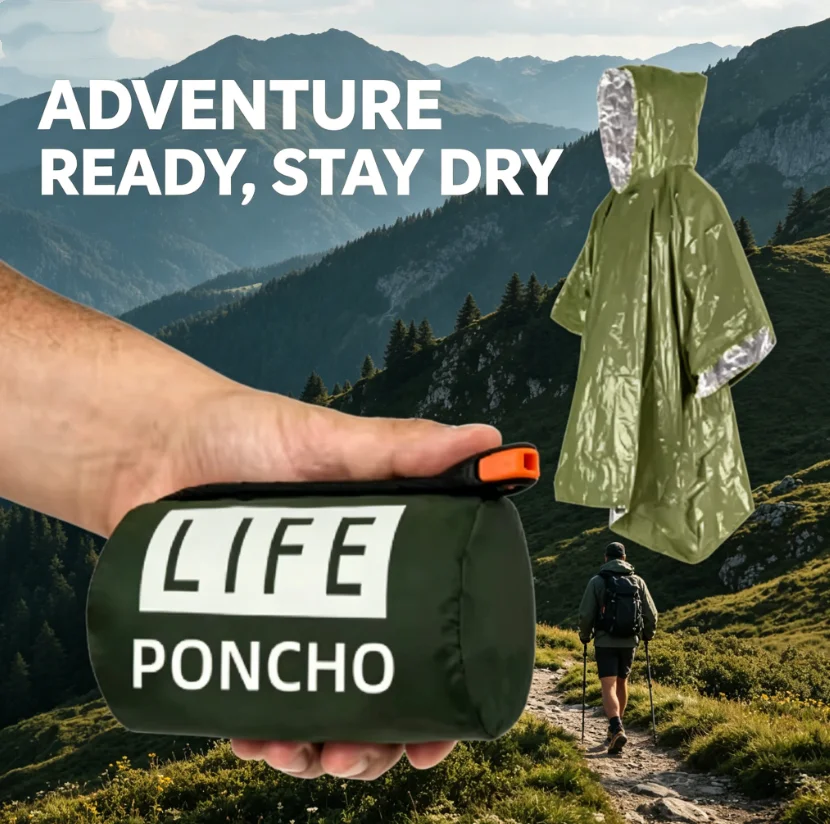 Poncho de pluie thermique d'urgence 3-en-1 | Équipement de survie léger et réfléchissant la chaleur pour les aventures en plein air