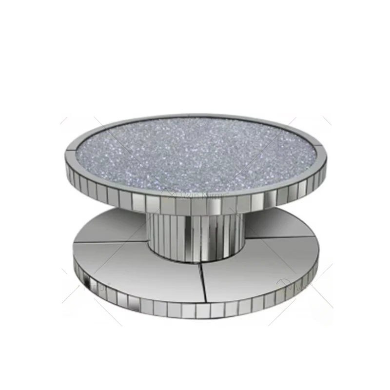 Table basse ronde en verre de luxe moderne avec miroir en diamant, vente en gros, pour la maison, le salon, en bois, diamant écrasé, or