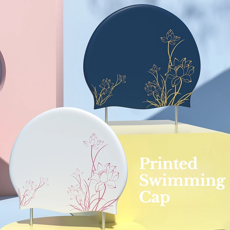 Bonnet de bain imprimé Lotus pour femmes cheveux longs, bonnet de bain élargi imperméable en Silicone, bonnets de natation de Protection des oreilles 2 couleurs