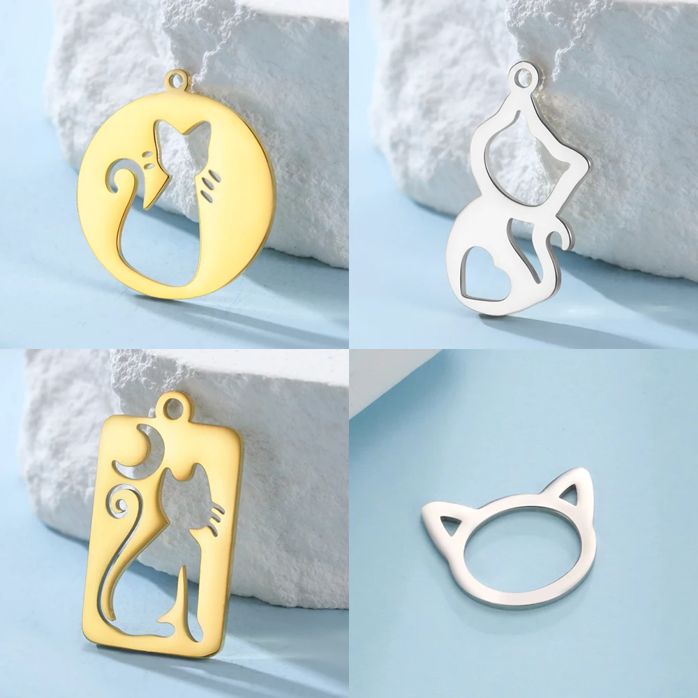 EUEAVAN 1pc acier inoxydable creux Animal chat pendentif chaton bricolage breloques collier Bracelet boucles d'oreilles fabrication de bijoux accessoires