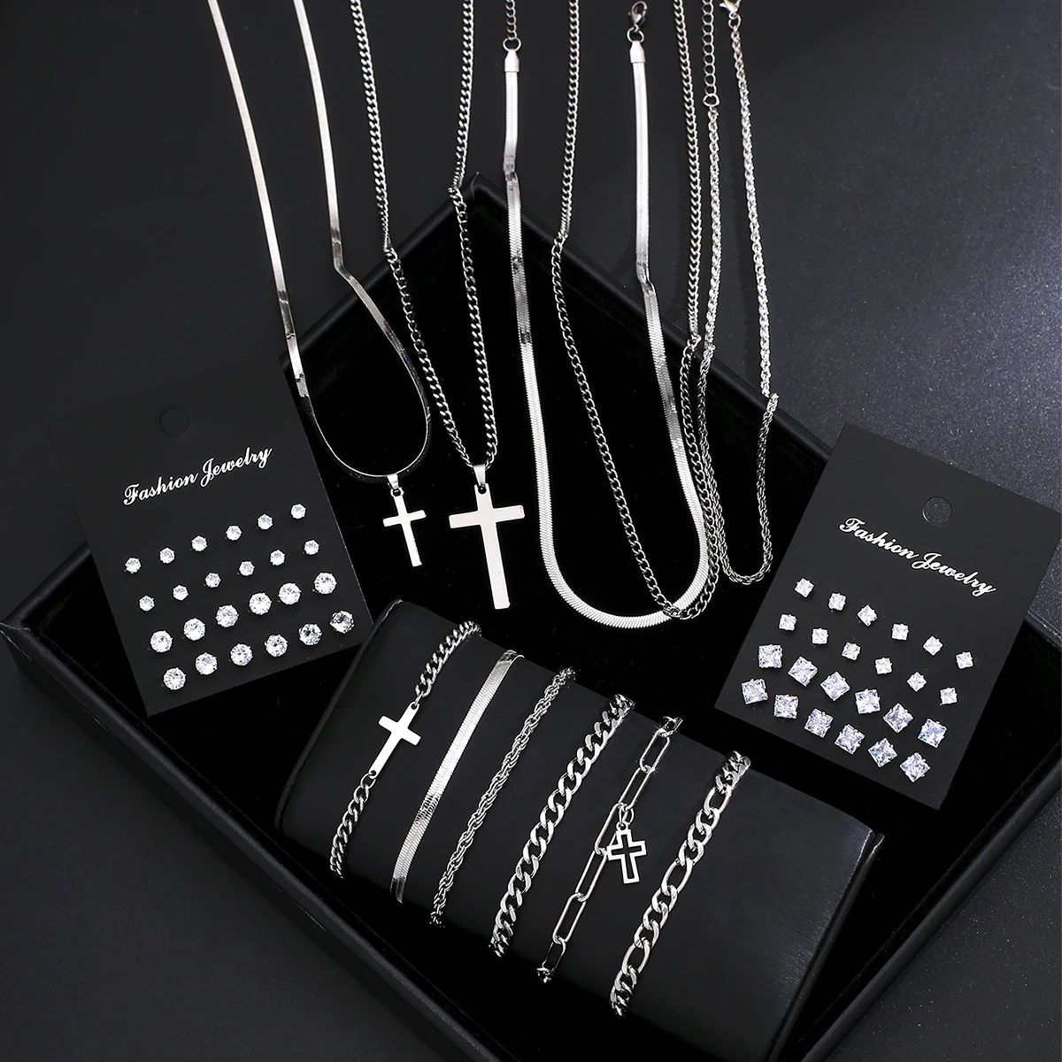 59 pièces ensemble de bijoux Punk en acier inoxydable pour hommes femmes Zircon croix pendentif collier Bracelet boucles d'oreilles ensembles unisexe Hip Hop bijoux
