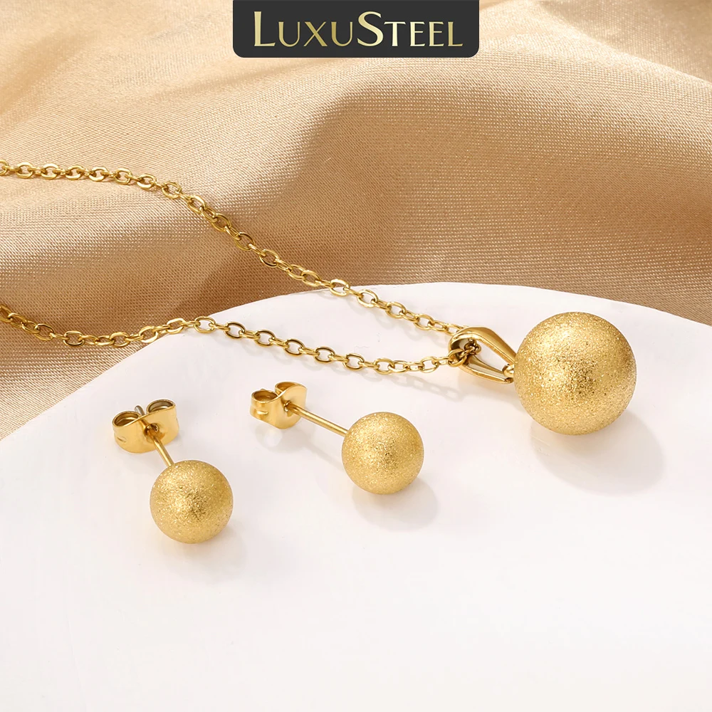Ensemble de bijoux givrés de luxe, pendentifs à la mode, ensembles de boucles d'oreilles pour femmes et filles, chaîne ronde en acier inoxydable doré