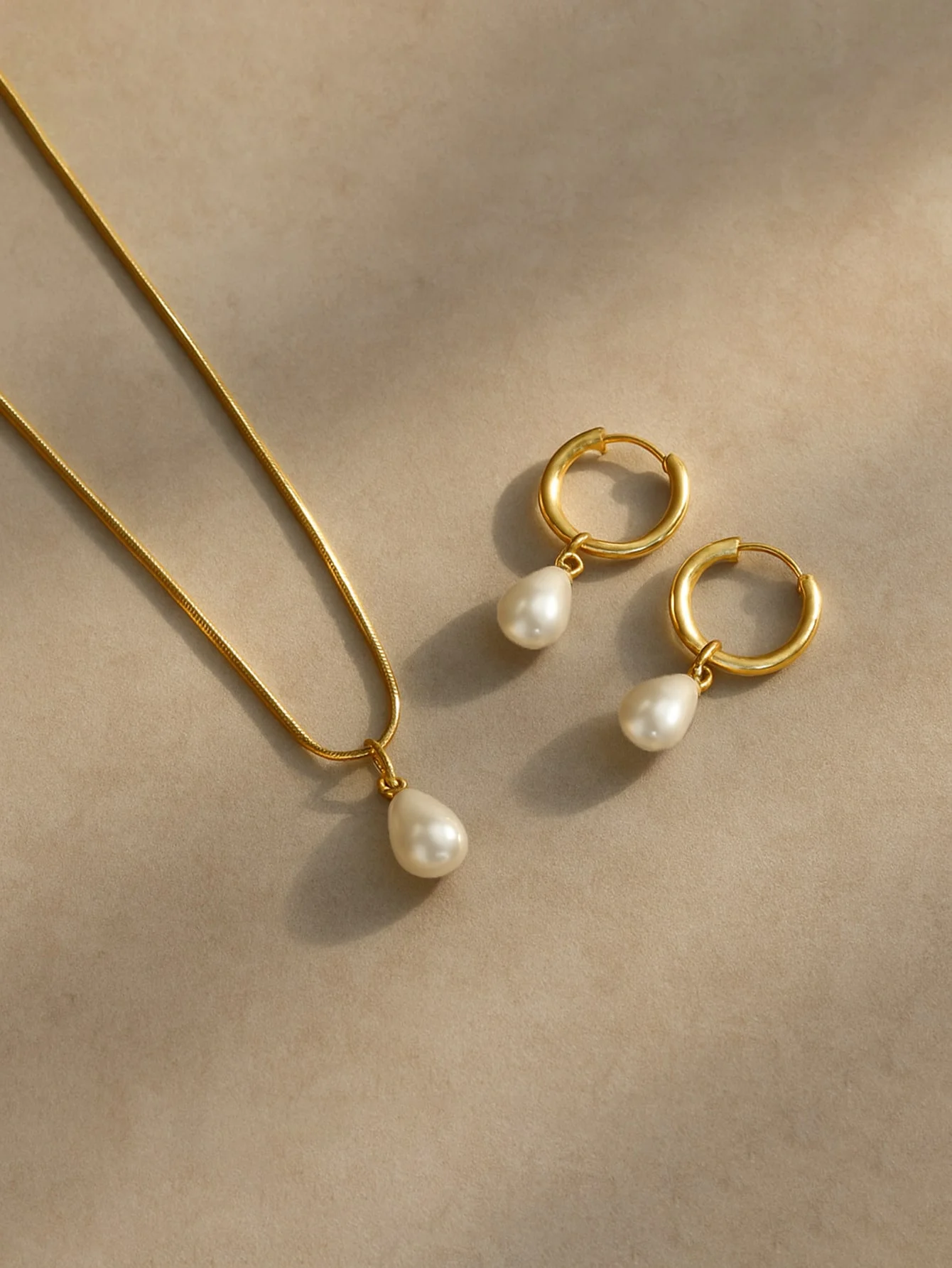 Ensemble de bijoux en acier inoxydable pour femmes, 3 pièces, étanche et ne se décolore pas, élégant, gouttelette d'eau, perles, boucles d'oreilles, collier