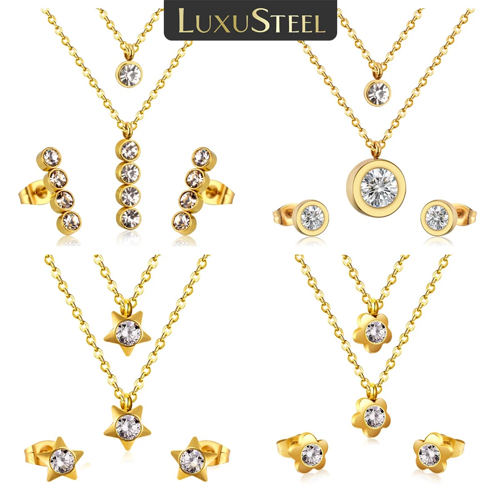 LUXUSTEEL étoile fleur cubique zircone pendentifs collier boucles d'oreilles ensembles pour femmes fille en acier inoxydable chaîne collier bijoux cadeau
