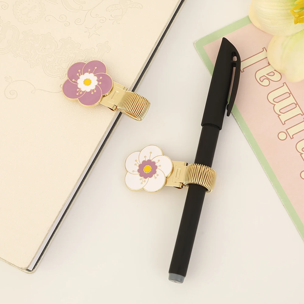 Clip de stylo en métal à fleur exquise, avec clip métallique à ressort, utilisé pour l'écriture manuscrite, les cahiers et la papeterie de bureau pour étudiants, 1 pièce