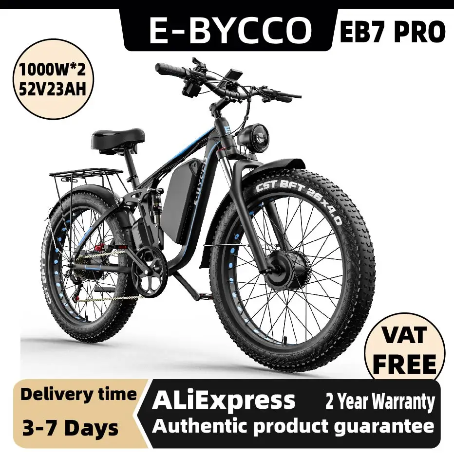 E-BYCCO EB7-PRO vélo électrique 2000W double moteur 52V23AH batterie tout-terrain vélo électrique 26*4.0 "gros pneu e-bike frein hydraulique