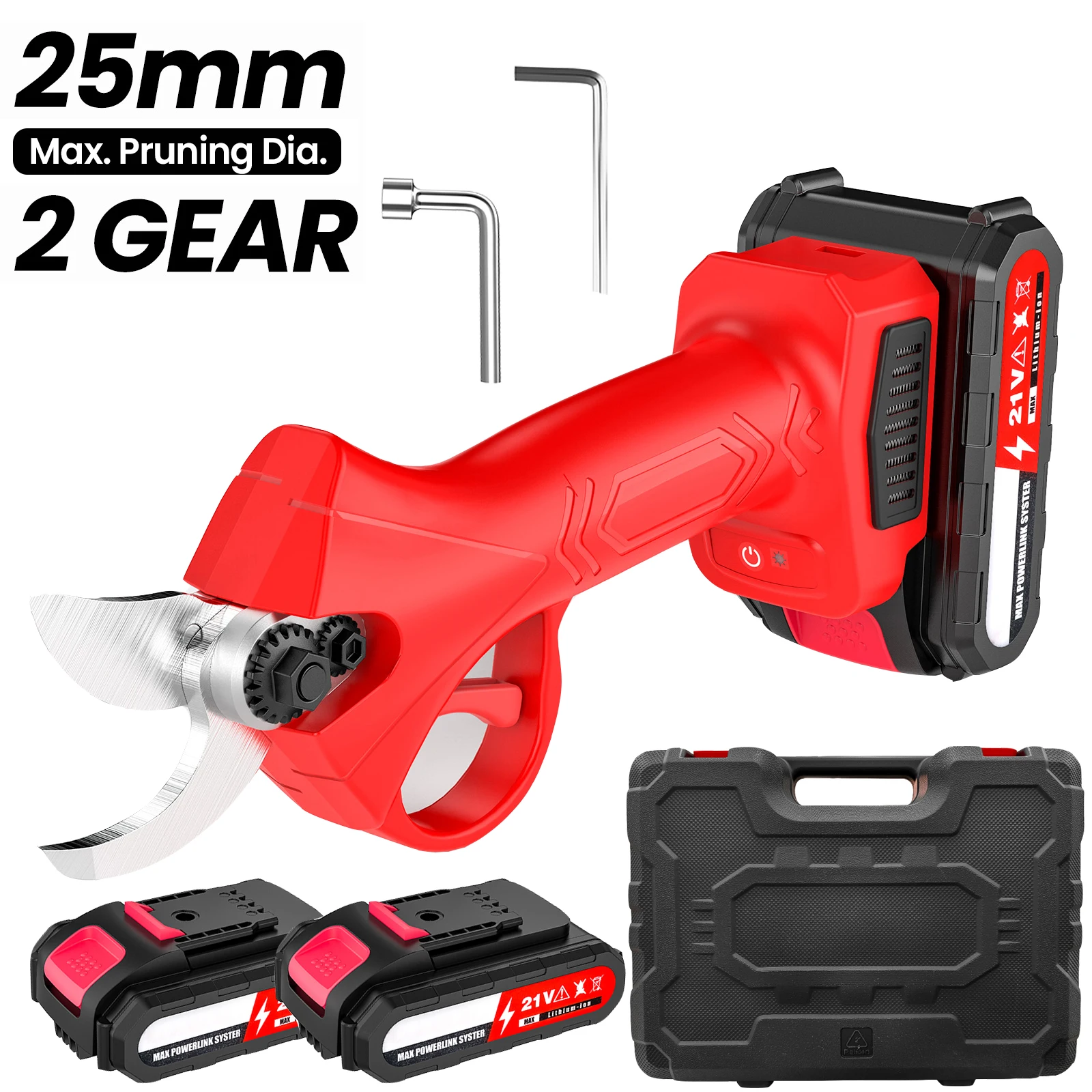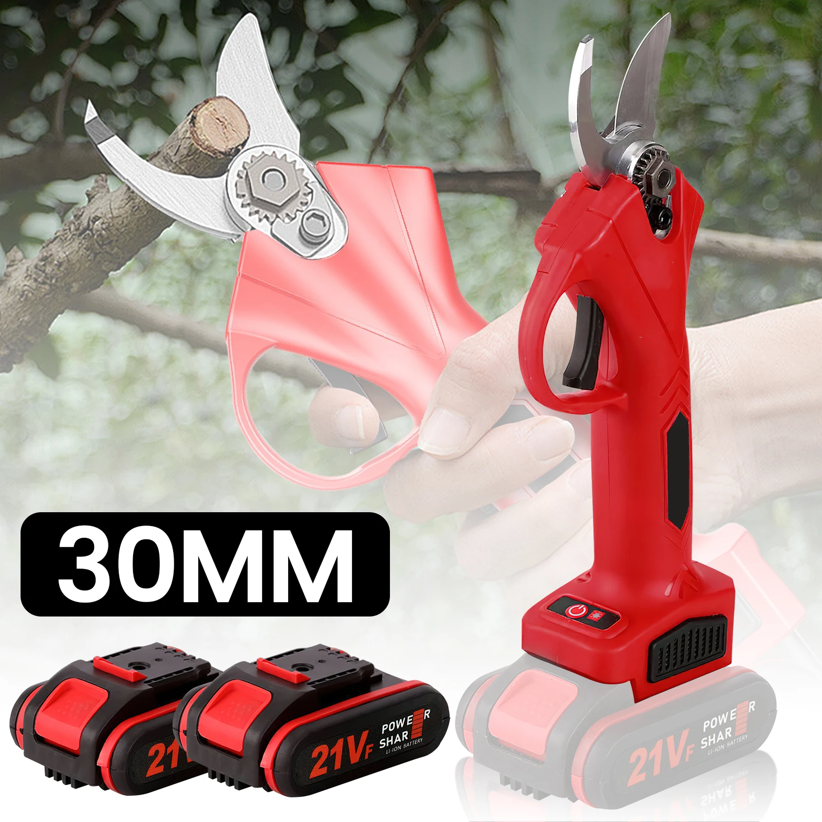 Sécateur électrique sans fil 25/30mm, sécateur pour arbres fruitiers, bonsaï, Branches de taille, outil électrique avec 2 batteries 21V