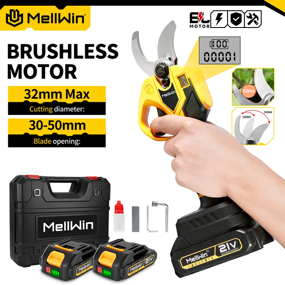 MELLWIN – cisaille électrique sans balais 32mm, ciseaux électriques pour arbres fruitiers, bonsaï, outil pour Makita, broche de batterie 18V