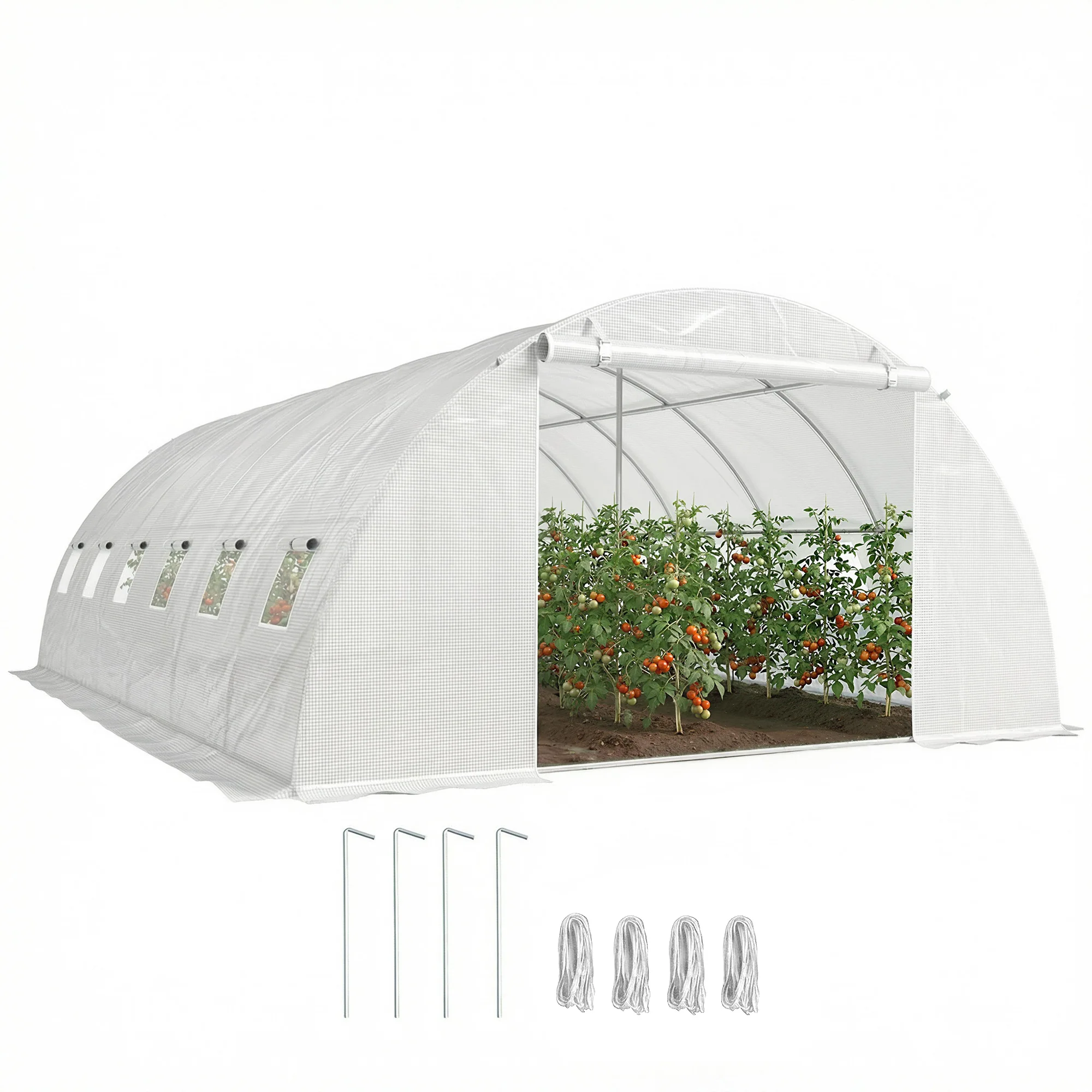 Outsunny Serre tunnel de jardin 12m², serre de jardin tunnel 295x400x200cm avec cadre en acier galvanisé, 2 portes et 8 fenêtres