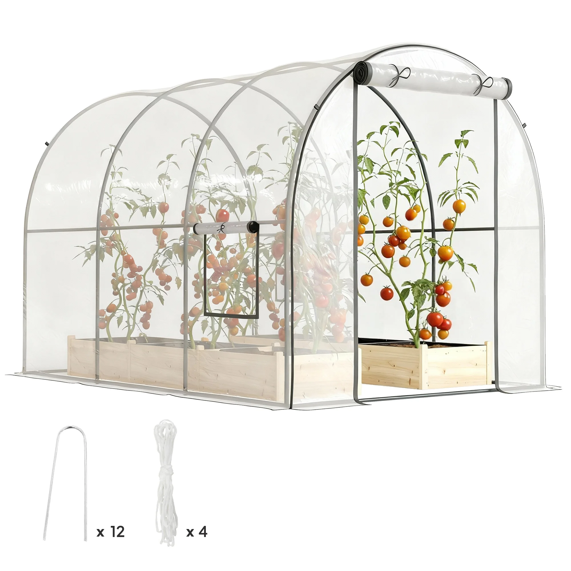 Serre tunnel Outsunny 3X2X2M avec porte à enrouleur et fenêtres transparentes