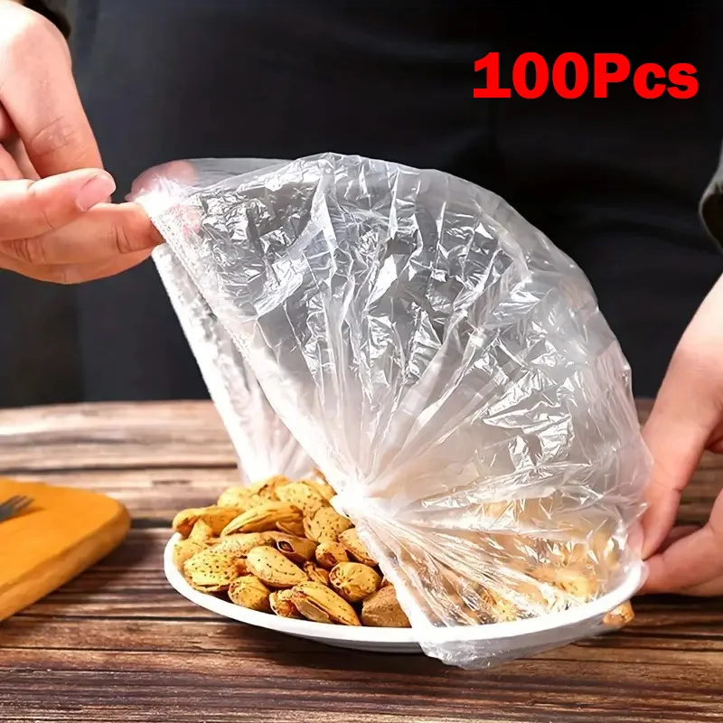 Couvercles alimentaires élastiques en plastique de qualité alimentaire, 100 pièces, sacs enveloppants pour réfrigérateur, sac de conservation des fruits et légumes frais