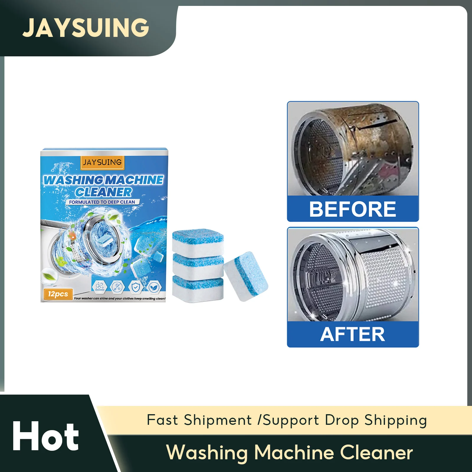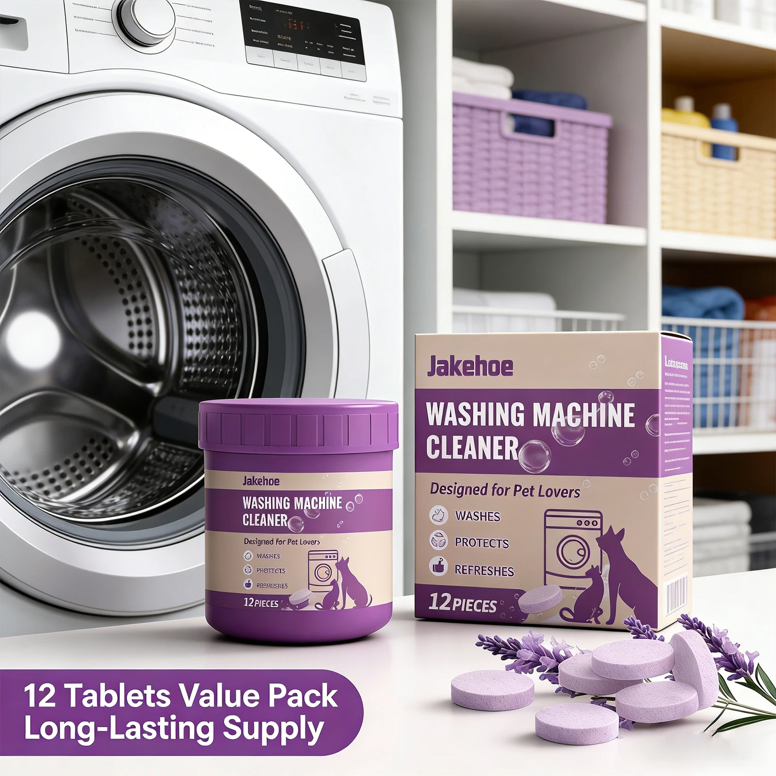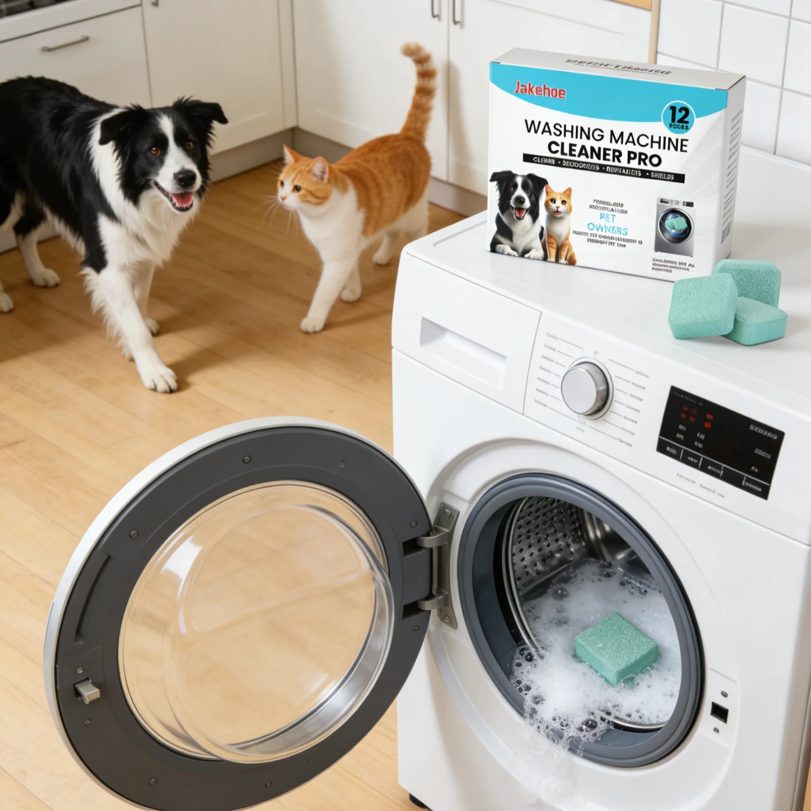 Nettoyant pour lave-linge Jakehoe pour les familles éleveuses d'animaux, facile à utiliser, sans démontage, élimine les odeurs, parfum frais, comprimés de nettoyage en profondeur