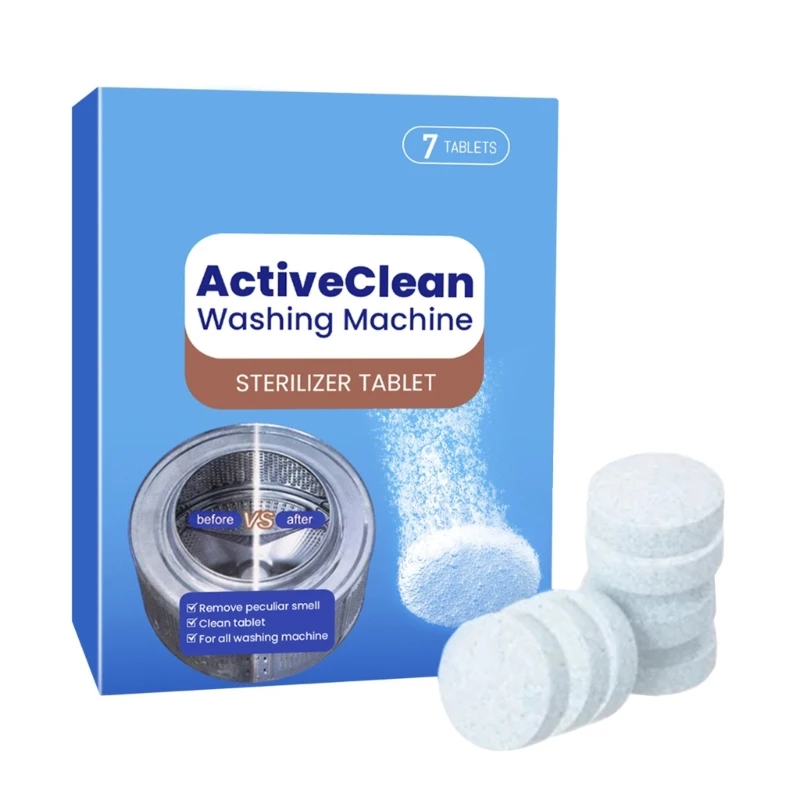 Comprimés de nettoyage pour machine à laver, nettoyant efficace pour machine à laver, élimination des taches et des odeurs, livres profonds, 7 pièces