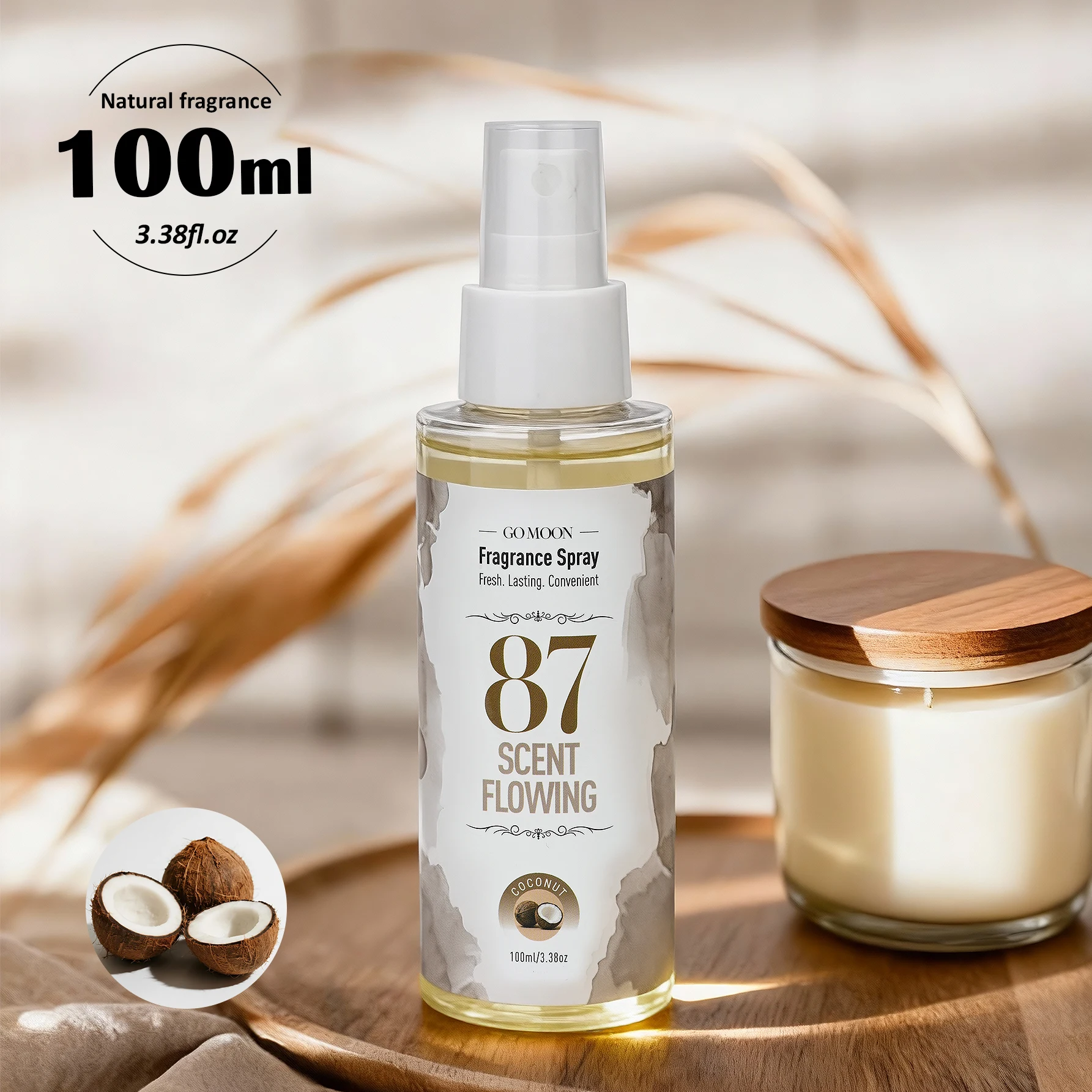 Spray parfumé au parfum de noix de coco, 100ml/3.38oz, élimine rapidement les odeurs, parfum longue durée, air frais, adapté à la maison, à la voiture