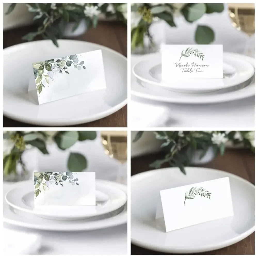 Cartes de Place de Table à feuilles vertes vierges, 50 pièces, papier simple, carte de visite tentée, impression de cartes cadeaux, réception nuptiale