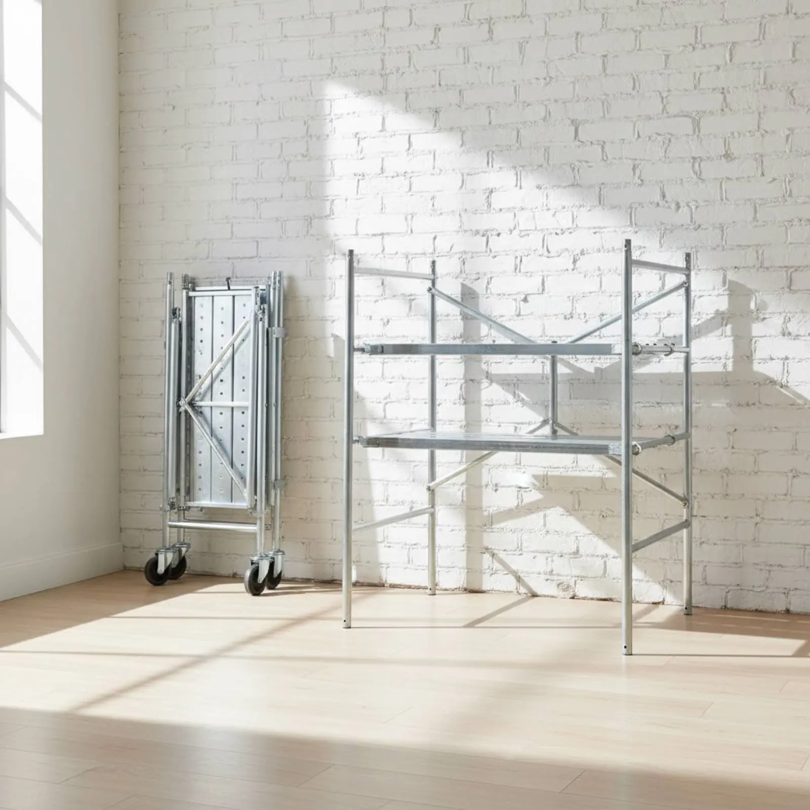 Échafaudage pliant à montage facile, mobile, surface de travail surélevée, réglable, surface surélevée polyvalente, à roulettes