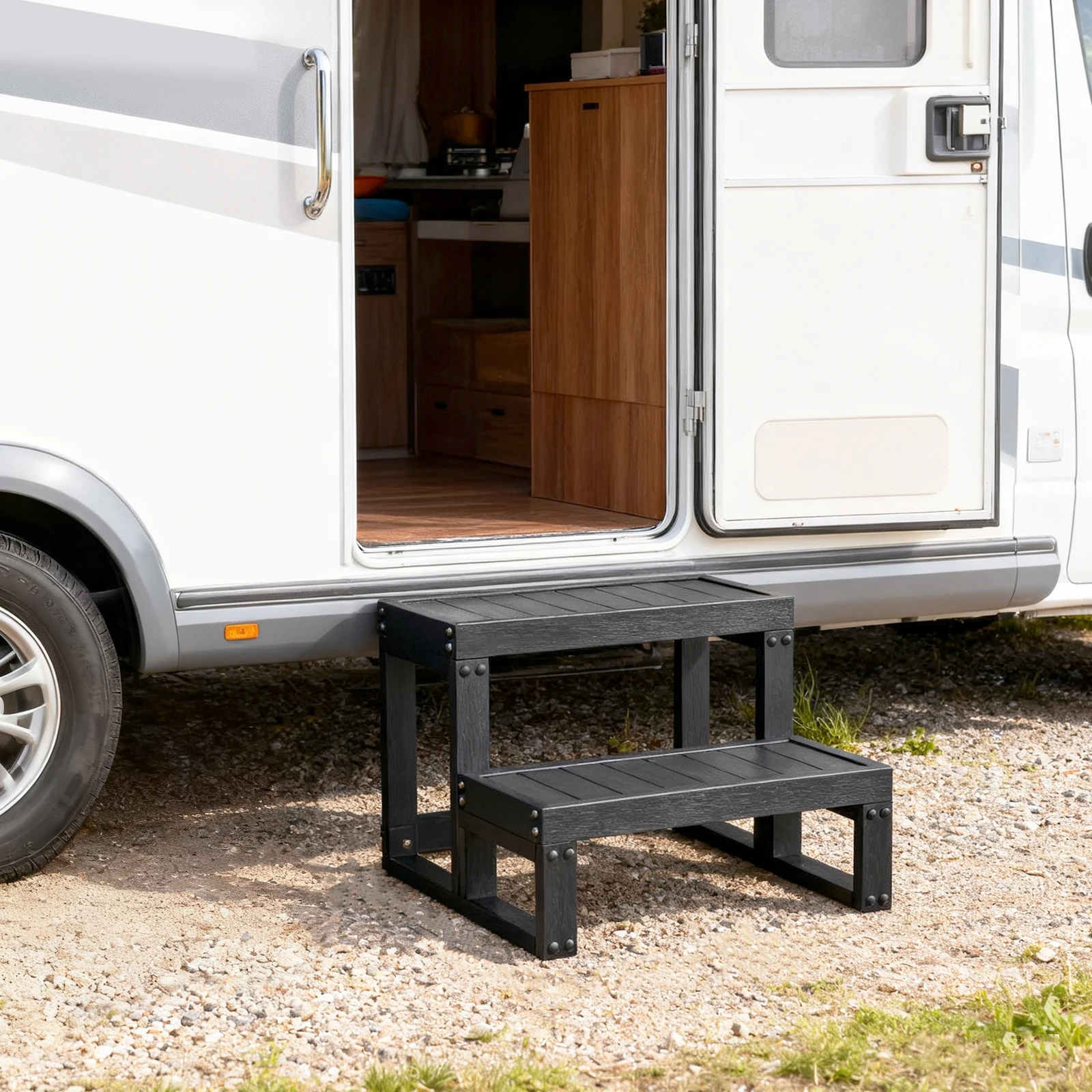 Escaliers de salle de bain en WPC à 2 niveaux, antidérapants, marches pour spa, marches pour baignoire, montage facile pour spa intérieur et extérieur, noir
