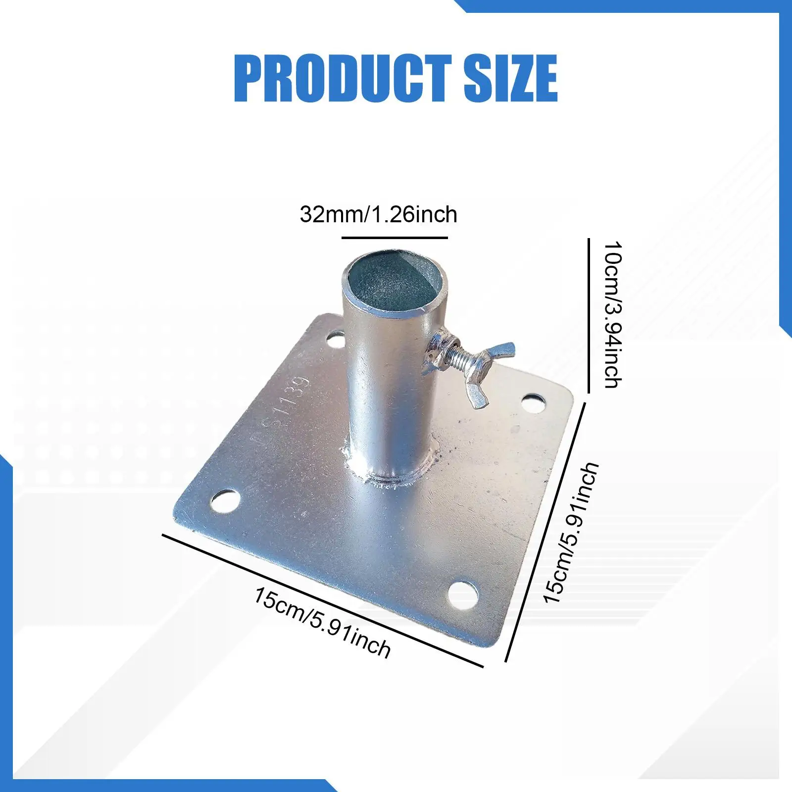 Plaque de base de ponte, pièces de rechange, 15 cm x 15 cm, diamètre du tube 3,2 cm, construction soudée, pour accessoire de ponte, en fer zingué