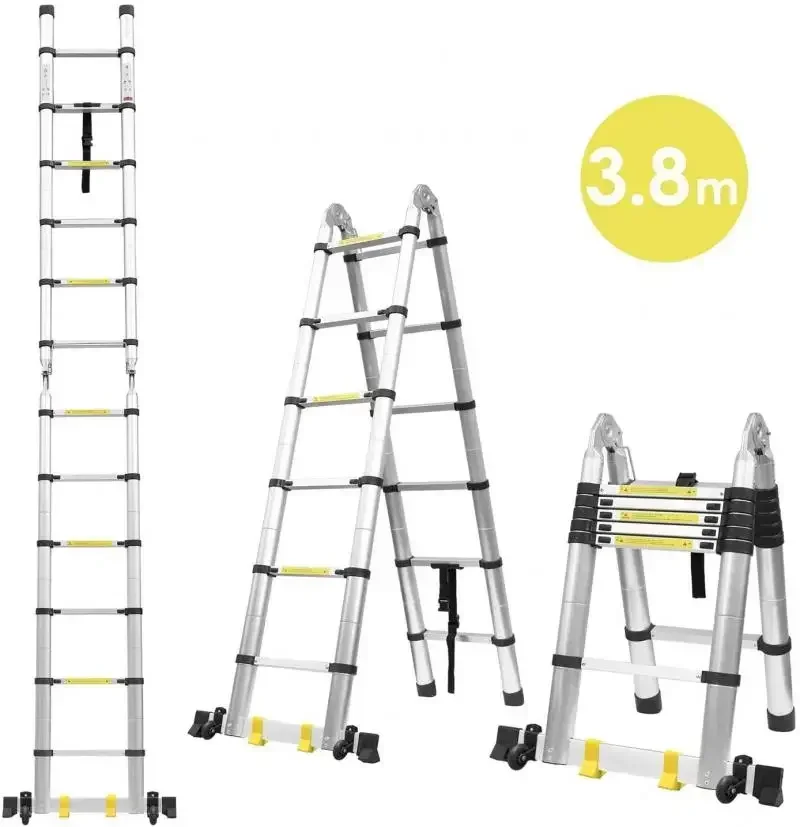 Échelle télescopique pliable durable 1,9 m + 1,9 m, échelle à chevrons extensible en toute sécurité, échelles droites peu encombrantes, en aluminium épaissi