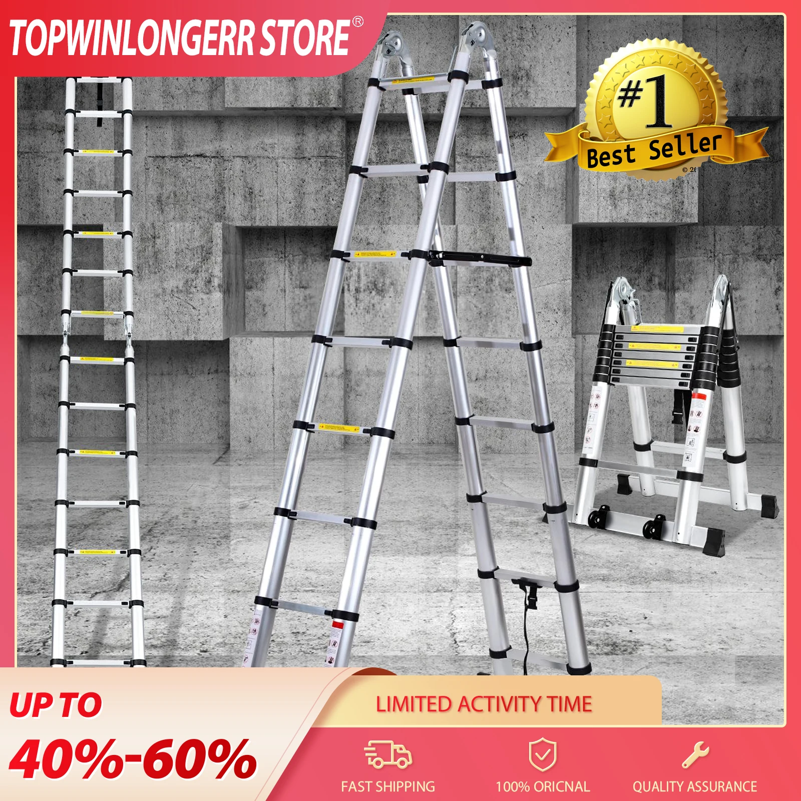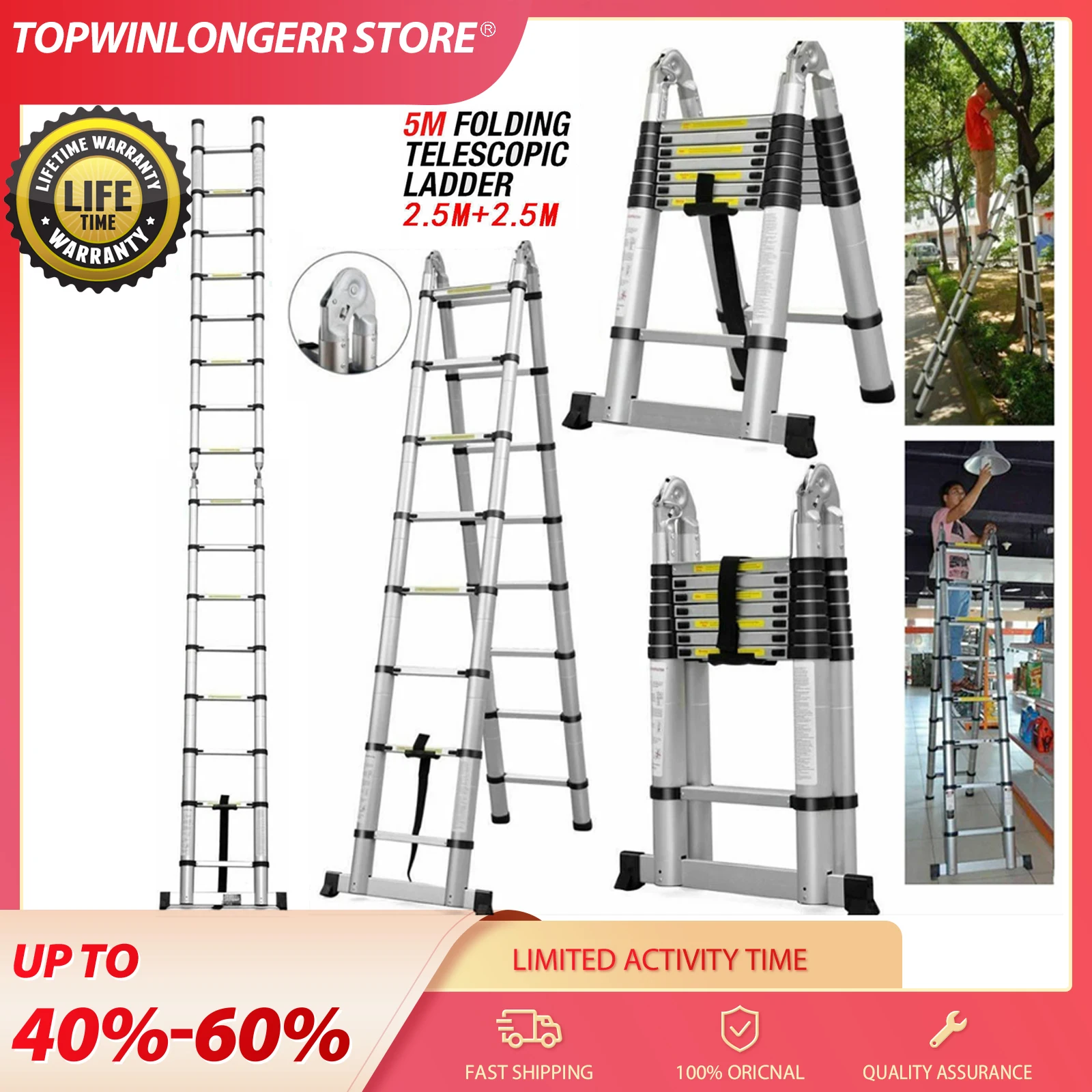Échelle télescopique en aluminium 5 m (2,5 + 2,5 m) / 196,85 po, extensible, multifonction, antidérapante, capacité de charge 150 kg, pour la décoration
